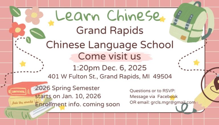 The Grand Rapids Chinese Language School (GRCLS) is a nonprofit organization, serving Grand Rapids communities since 1991. We strive to promote quality education by offering classes in Chinese Language and cultural awareness to students of all ages and background. GRCLS is organized exclusively for educational purposes under section 501(c)(3) of the Internal Revenue Code.GRCLS is a member of the Chinese Language School Association of Michigan and a member of the Chinese Language School Association of the United States. The school’s mission is to offer Chinese language courses and Chinese culture classes.